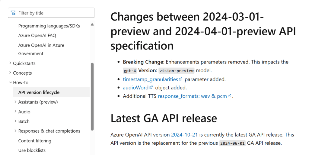 Azure OpenAI in Azure AI Foundry Models API version lifecycle – Azure AI services | Microsoft Learn
